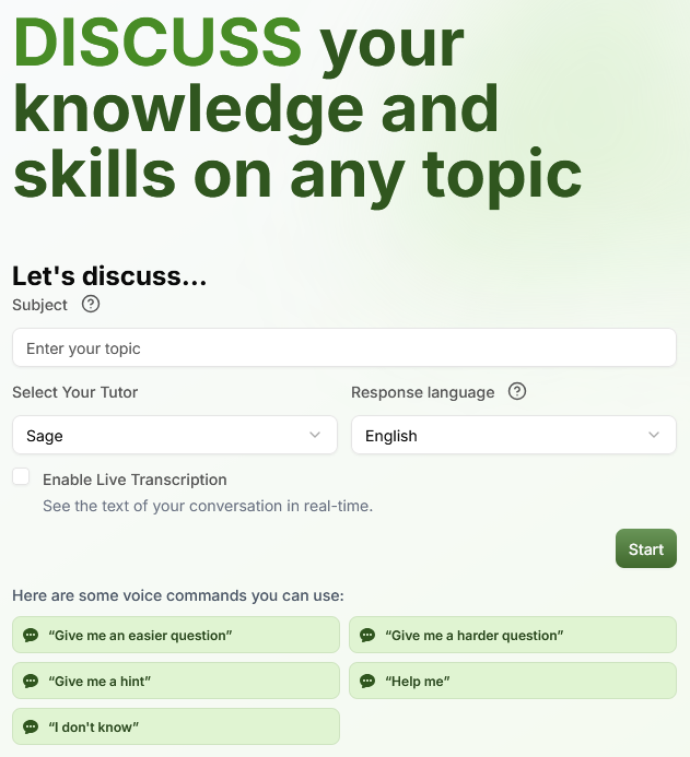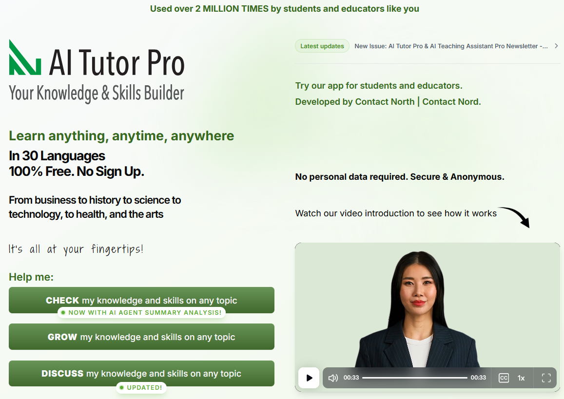 Ši platforma parengta kaip besimokančiojo asmeninis korepetitorius DI pagalba. Besimokančiajam pasirinkus dominančią temą nuo verslo iki istorijos, nuo mokslo iki technologiją, nuo sveikatos ar meno iš šios DI platformos gauna nuosekliai po klausimą į kurį besimokantysis atsako ir iš „AI Tutor Pro” gauna įvertinimą ir teisingo atsakymo paaiškinimą.