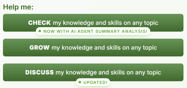 Besimokantysis gali pasitikrinti (Check), patobulinti (Grow), lavinti ar aptarti (Discuss) savas žinias ir įgūdžius.