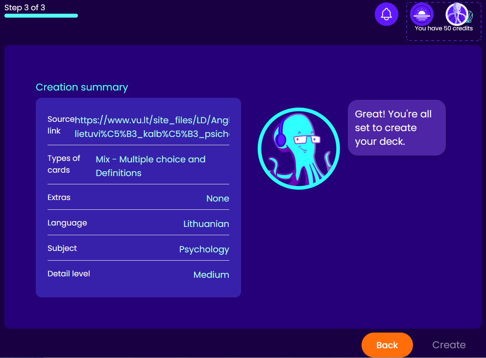 Studentai turimus užrašus gali transformuoti į mokymosi korteles bei interaktyvias mokomąsias veiklas.