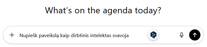 Tekstinės užklausos laukelyje įrašykite užklausos tekstą apie ką norite, kad būtų sugeneruotas paveiksliukas. Supranta užklausas ir lietuvių kalba. Nemokamai generuoja iki 5 paveiksliukų per parą.