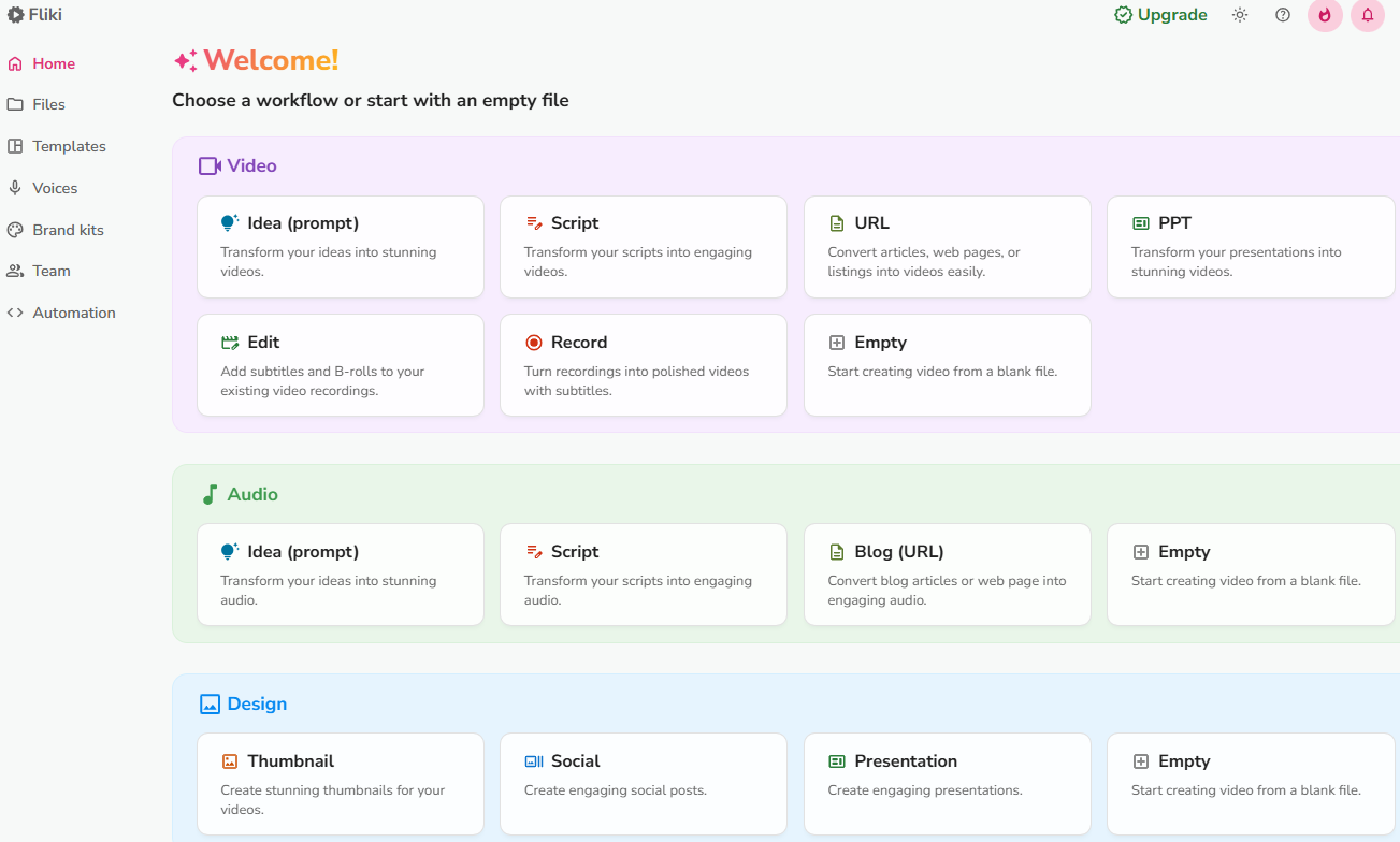 Pasirinkite iš ko bus kuriamas interaktyvus turinys su balsu.