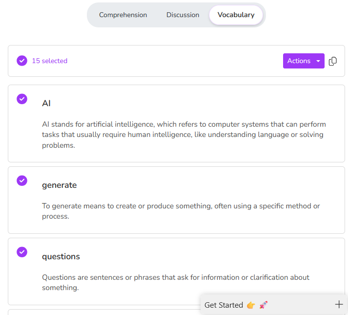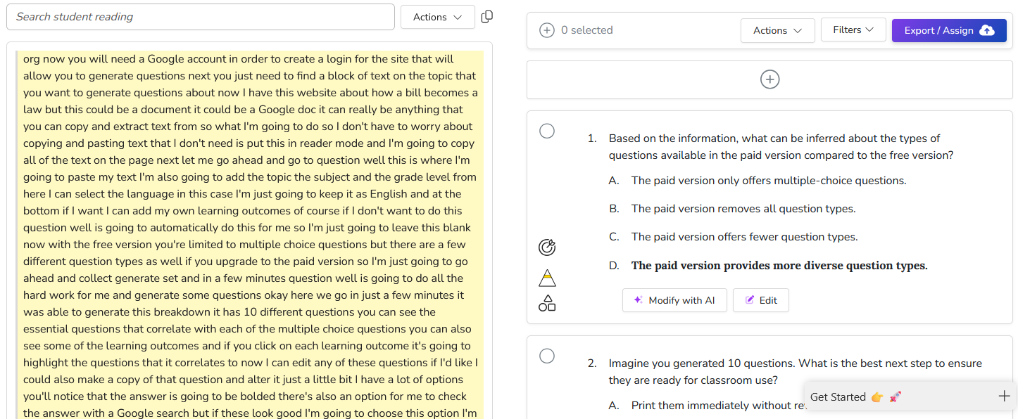 Dirbtinio intelekto pagrindu veikiant platforma skirta pedagogams (mokytojams, dėstytojams) klausimų, skaitymui skirtos medžiagos, mokymosi tikslų ar vertinimo turiniui generuoti. Galima rengti santrumpas, generuoti tekstą iš „youtube” vaizdo įrašų.
