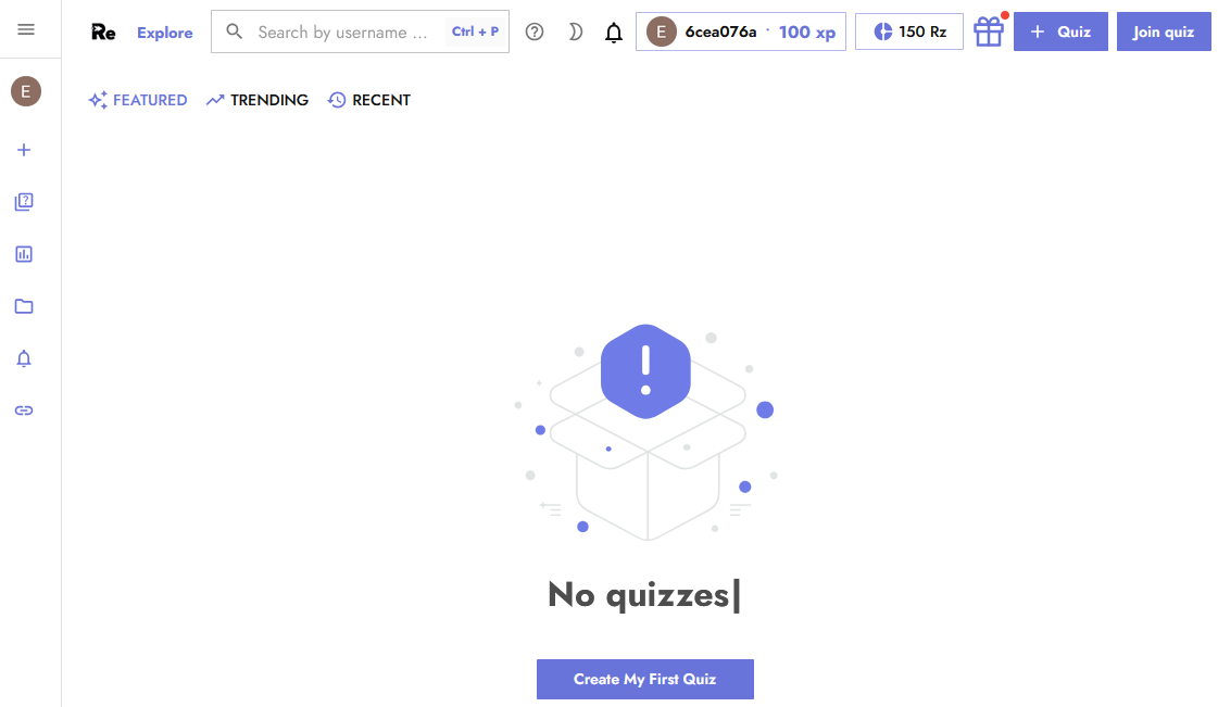 Norint kurti testą, spauskite „Create My First Quiz”.