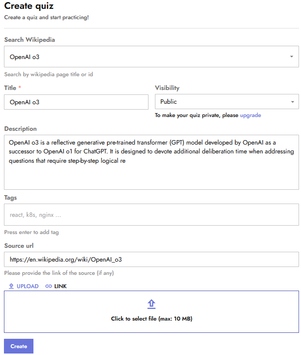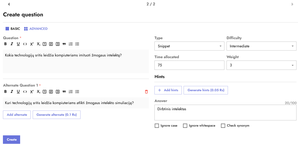 Generuojant klausimus galima pateikti tekstą, youtube įrašą, nuorodą, dokumentą. Rezultatą galima gauti ir lietuvių kalba.Spauskite”Generate”.